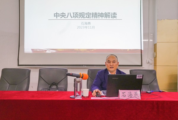 课上,石海燕以“中央八项规定精神解读”为题,围绕中央八项规定出台的背景、准确把握违反中央八项规定精神的整治重点以及巩固拓展中央八项规定精神该怎么做等内容,向学员们深入阐释了中央八项规定精神的丰富内涵与重大意义,同时结合近年来发生的一些典型案例,分析了违反中央八项规定精神的案例特点和问题根源,告诫科干班学员们要以案为鉴、以案示警,严格遵守中央八项规定精神,争做严于律己的模范表率。