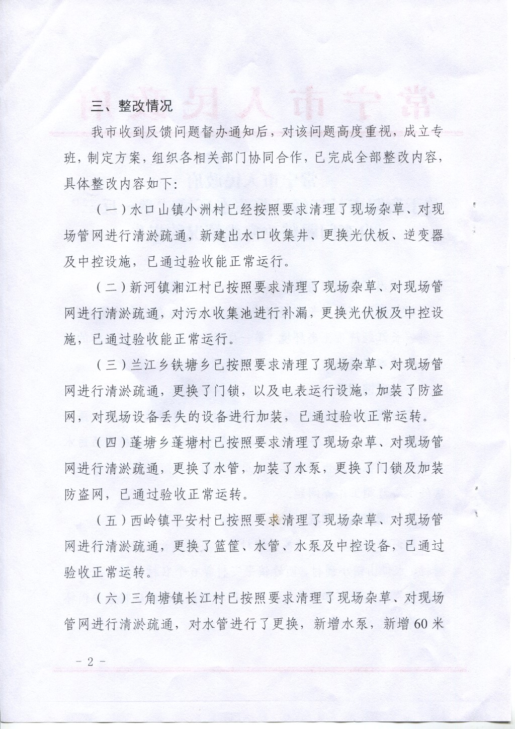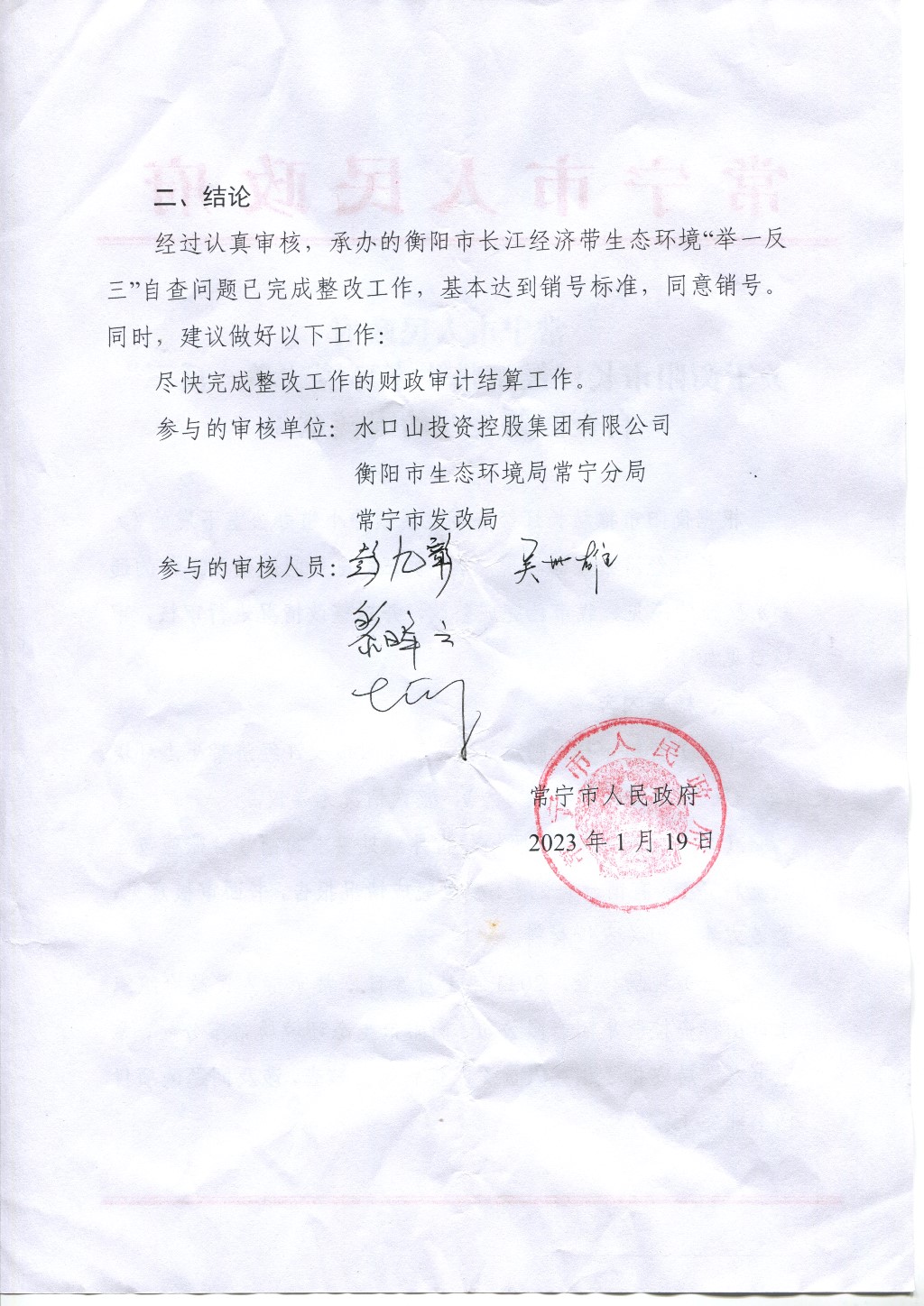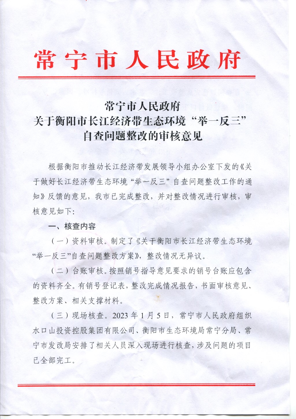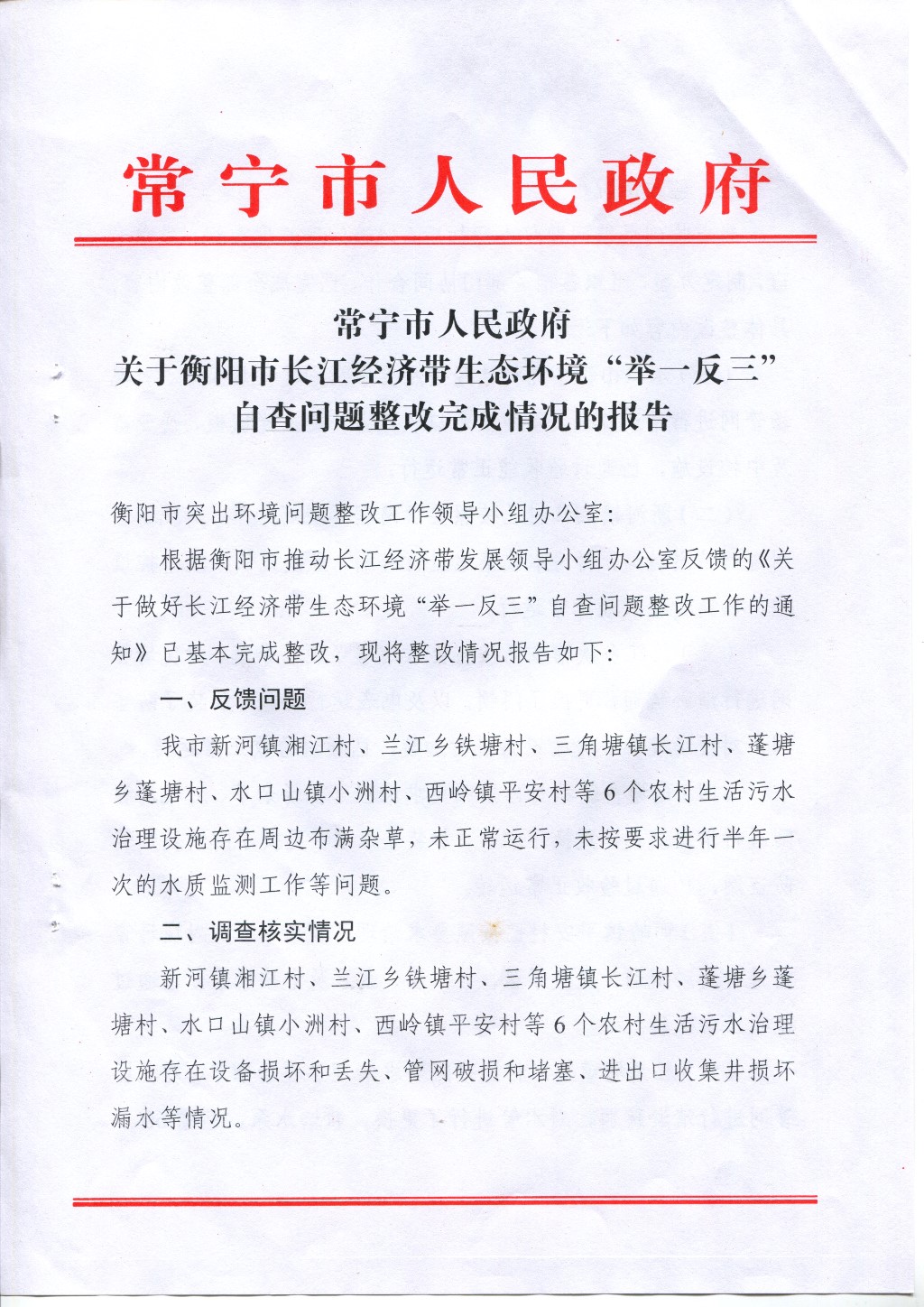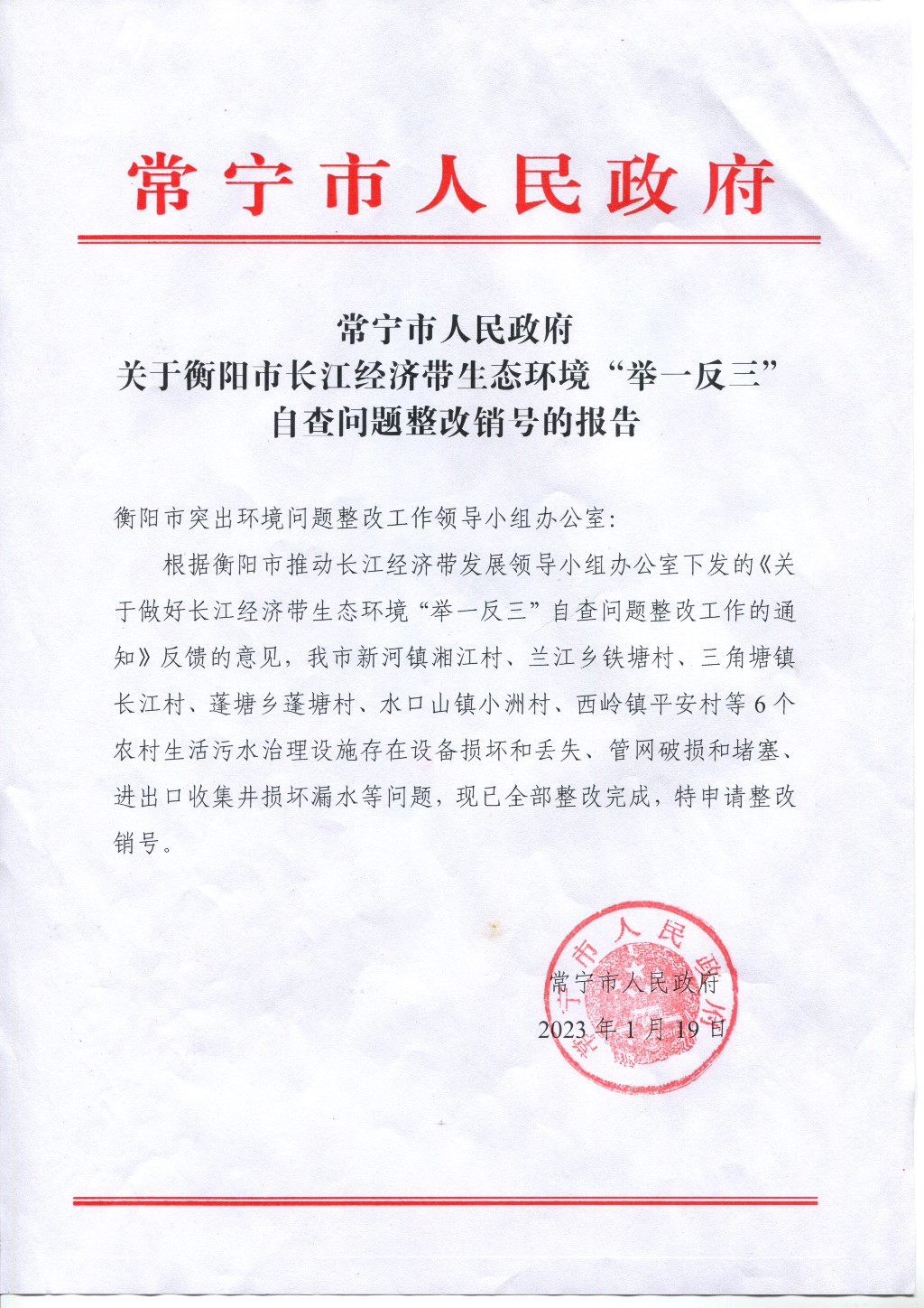 关于衡阳市长江经济带生态环境“举一反三”自查问题整改的审核意见、整改销号的报告、整改完成情况的报告