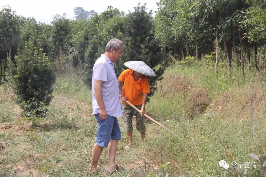 10点13分,吴代和来到市林业部门在该村推广的育苗基地,看到村民冒着炎热的太阳在地里挖沟除草,连忙向前告诉挖沟技巧,并嘱咐村民,气温高,注意身体,干一会就回家休息。