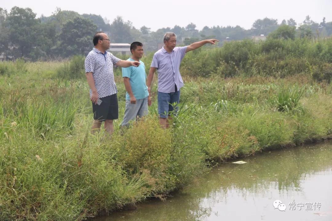 11点34分,吴传厚、吴代和来到稻虾养殖基地,看水质,在田间地头与养殖户进行交流,作技术指导。