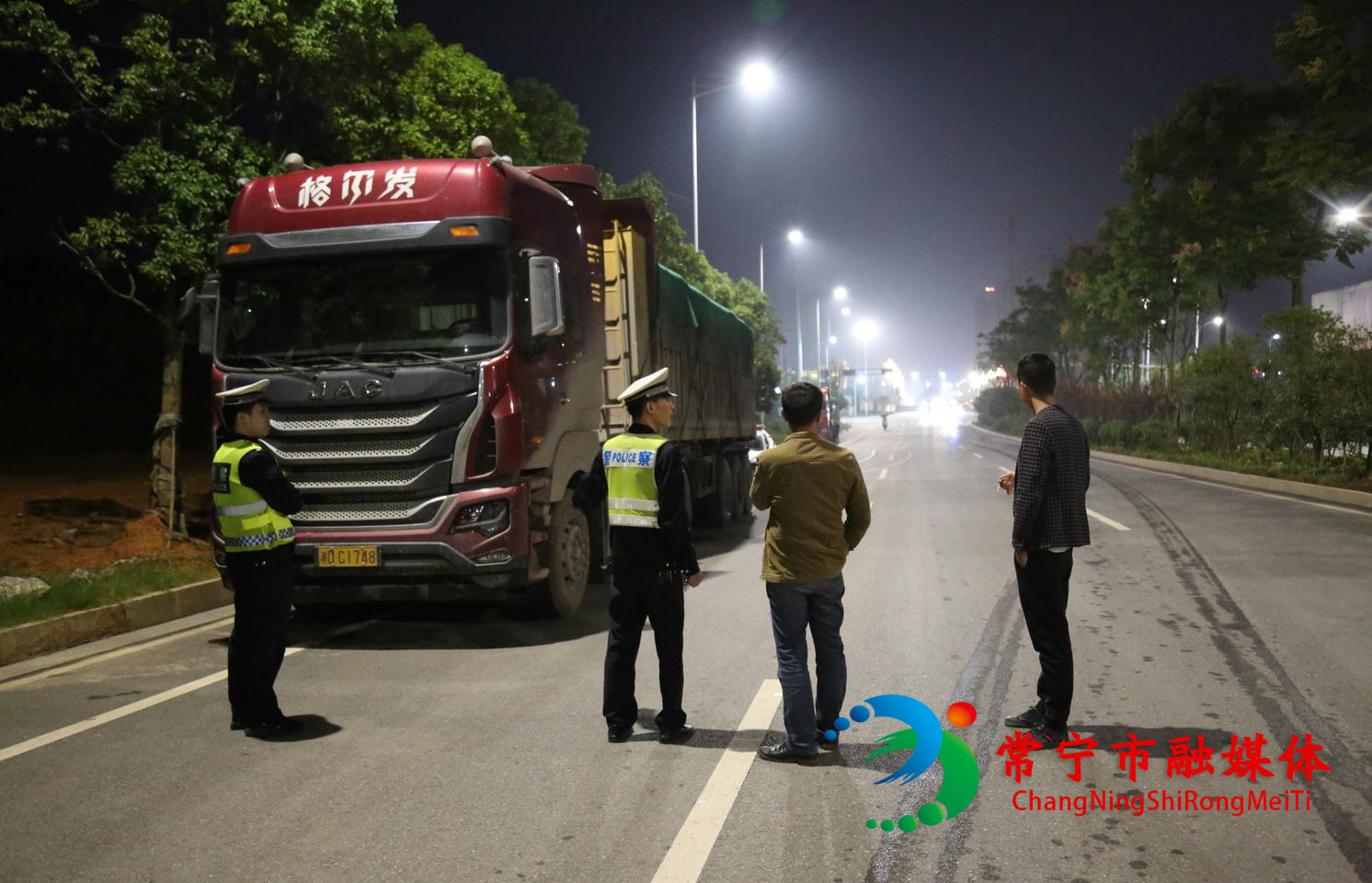 9月23日晚上,常宁市公安局交警大队办公室执法人员联合顽瘴痼疾集中整治有关成员单位开展夜查行动,先后在城区、盐湖、烟洲、水口山等地布控,一晚上查处了一台超载货车。为避免让违法司机钻空子,交警大队办公室执法人员决定开展秘密行动,杀个“回马枪”,不得向任何人透露(包括自己的妻子),上了警车后才通知查车地点。