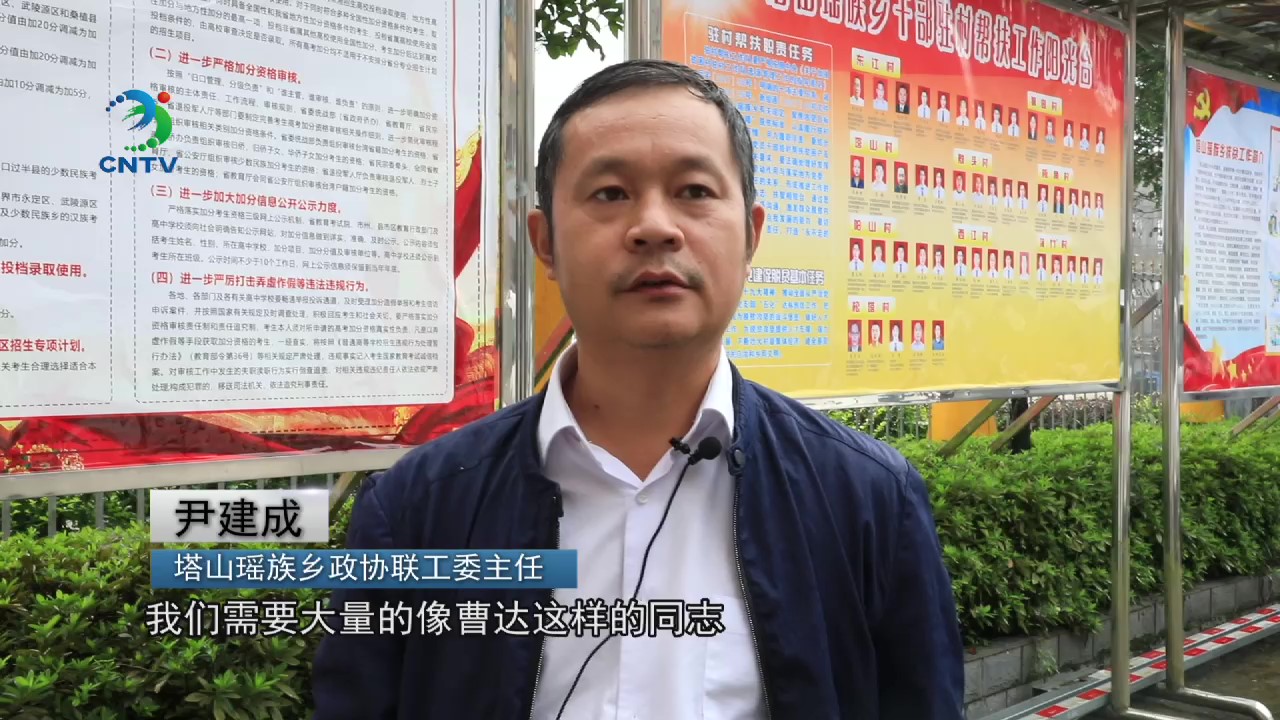 塔山瑶族乡政协联工委主任尹建成:塔山瑶族乡作为我们全市脱贫攻坚主战场,都是贫困村。要做好塔山瑶族乡的扶贫工作。我们需要大量的像曹达这样的同志。目前扶贫办三位同志成长的很快。大家都向他学习。(尹明)