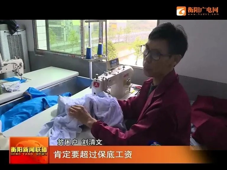 在常宁奔立尔教育科技公司的扶贫车间里,工人们正在加工校服,住在金塘安置点的贫困户胡迪安才来不久,接受技术培训后,就可正式上岗。