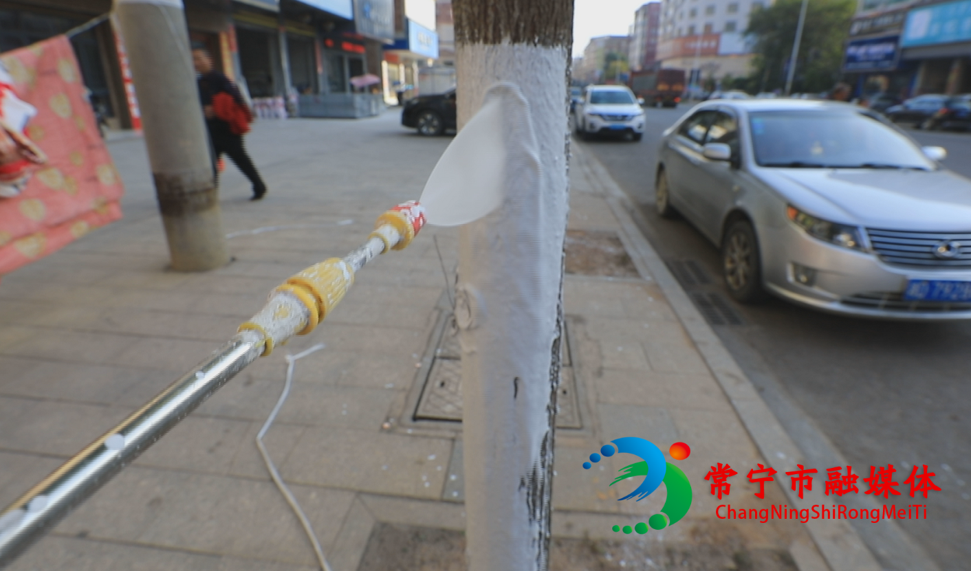 立冬过后,市园林管理处组织园林绿化养护工人对城区范围内主要道路及公共绿地内的绿化苗木开展了树干刷白工作,为城区乔木穿上一层“防护服”,确保树木安全过冬。