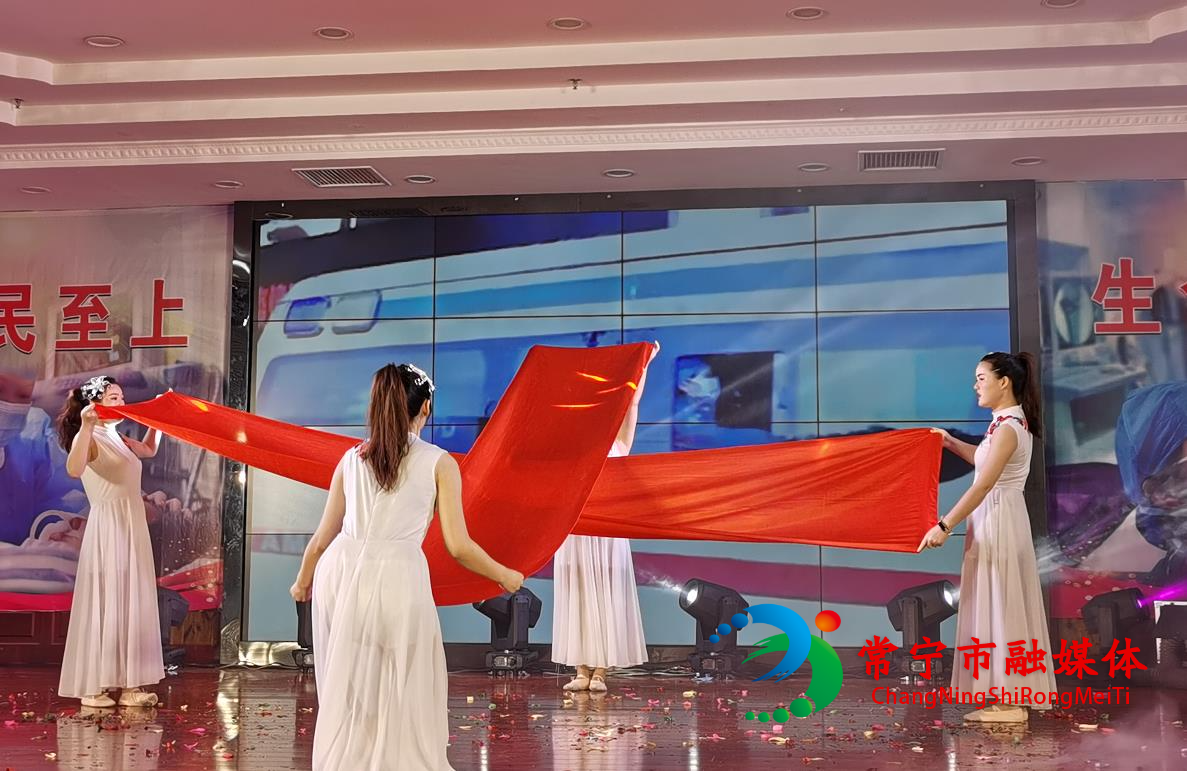永远跟随共产党,幸福生活万万年。节目在舞蹈《保卫黄河》中拉开序幕,重温了那段激情燃烧的岁月;《一起说说医和药》用快板这种独特的方式展示了常宁市中医院药剂科从无到有,从简陋到规范的发展历程;青山依旧在,几度夕阳红,斗笠舞《宜江水》表演者妙态绝伦,仿佛和音乐融为一体;雨后复斜阳,关山阵阵苍,情景剧《坚定希望》展现了在疫情期间,白衣天使迎难而上、逆行出征,始终坚守在疫情防控一线的英雄壮举;眉目传神,盼顾生姿,舞蹈情景剧《中医谣》令人回味无穷;小品《铿锵玫瑰》表演风趣幽默,令人捧腹大笑;医务剧表演《不一样的时代,一样的奉献》、舞蹈串烧《惊鸿掠影》、朗诵伴舞《我骄傲,我是常宁中医人》展现了医务工作者做响“南詹正骨” 金字招牌的自信与风采;轻盈的舞步优雅绽放,整场晚会在大型舞蹈《白衣礼赞、希望与我们同在》中落下帷幕,精彩纷呈的文艺演出伴随阵阵热烈的掌声,汇成一片欢乐的海洋。