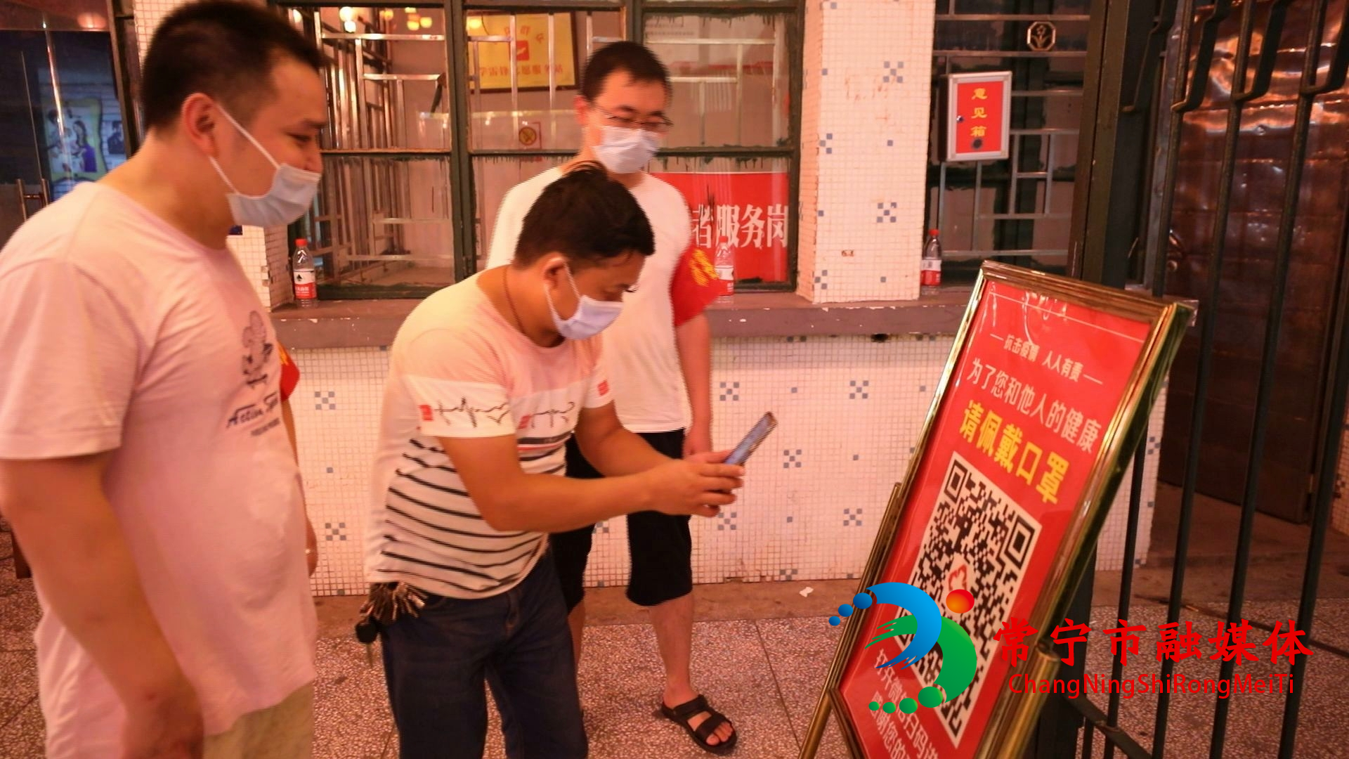 城管综合执法大队的工作人员陈求文:我们将持续推进各项防疫工作,加强对商家和市民进行疫情防控知识的宣传和引导,同时也号召广大市民在公共场所不聚集,积极配合重视,戴好口罩,并进行扫码。