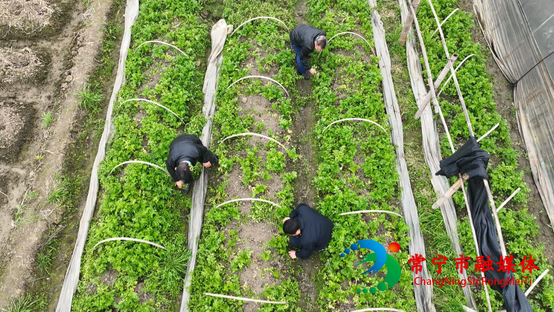 在三角塘镇老屋村,宽广平整的田野里生机盎然。温室大棚内,一颗颗蔬菜幼苗破土而出,嫩绿喜人。村民分工协作,有的给菜地除草,有的抓紧移栽蔬菜幼苗,忙得热火朝天。