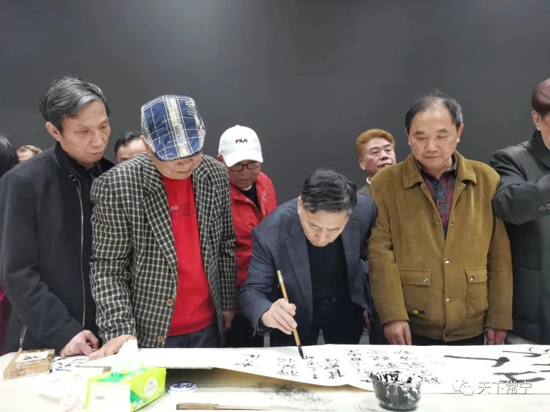 笔声沙沙,墨香四溢。活动现场,艺术家们站在一字长桌前,一个个精神抖擞,在空白纸上笔走龙蛇、挥毫泼墨,尽情挥洒才艺与激情。大家把水口山工人运动的历史与精神融入到书画创作中来,把对这段红色工运的推崇与感悟融入到一笔一划中去,勾画出一幅幅精美的书法、绘画、版画等艺术作品,并现场捐赠给水口山工人运动纪念馆,来进一步弘扬水口山工运精神,为常宁红色旅游增光添彩。