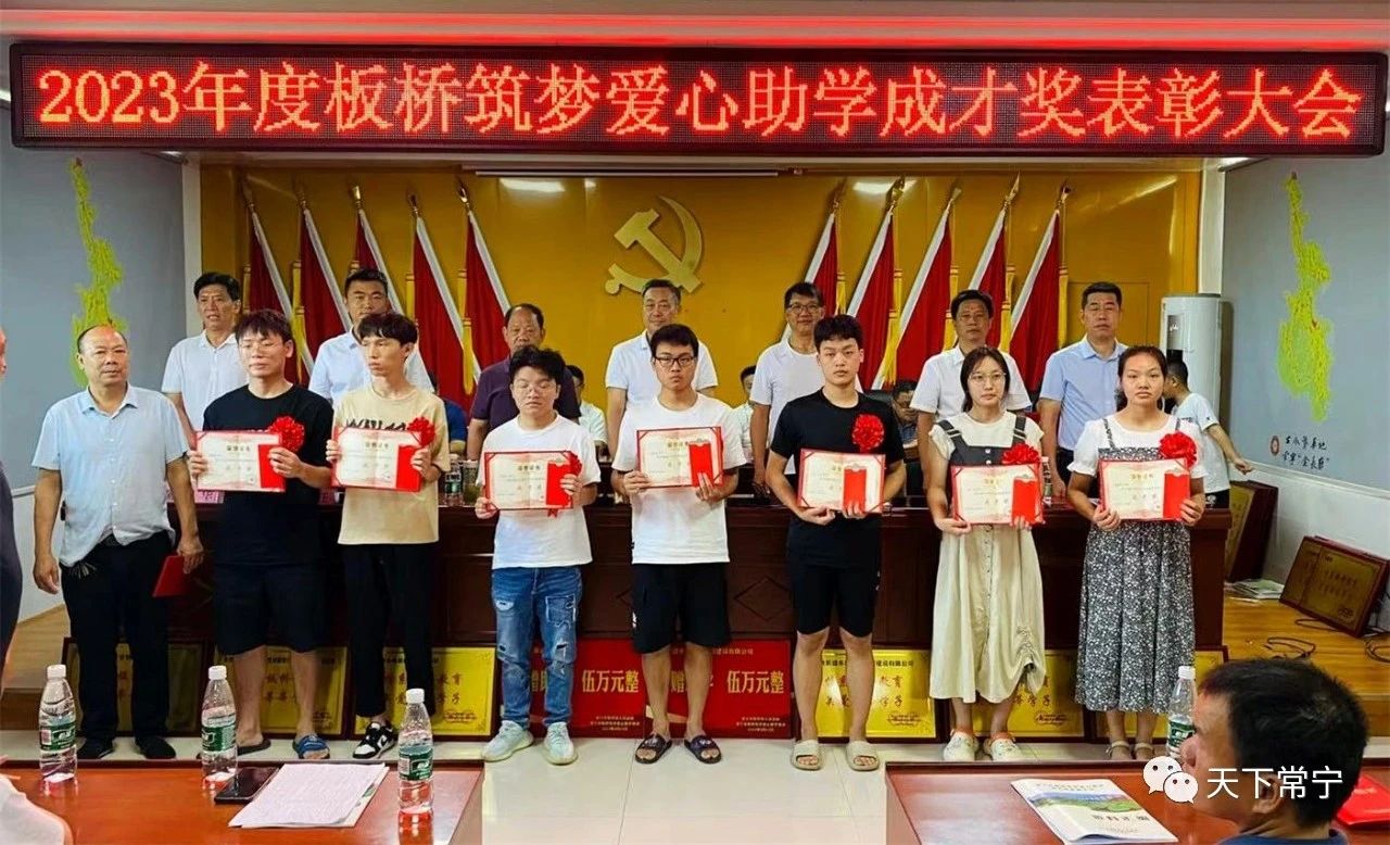 8月23日,板桥镇举行2023年度板桥筑梦爱心助学成才奖表彰会,为大学新生发放24.2万元助学金。今年板桥籍被国家985、211大学录取的大学新生15名,国家双一流大学录取的大学新生8名,国家本科院校录取的大学新生166名,协会的表彰和奖励,将进一步激励莘莘学子在人生道路上勇毅前行,踔厉奋发。