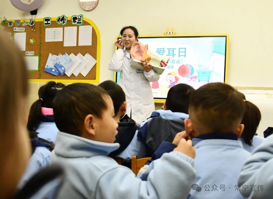 3月1日,常宁市第三人民医院来到常宁市第二幼儿园给孩子们讲耳朵健康知识。