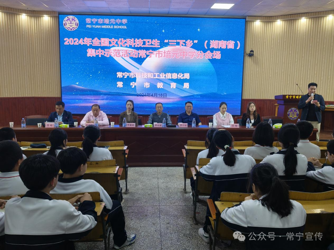 4月18日上午,2024年全国科技文化卫生“三下乡”集中示范活动在培元中学开展“弘扬中国科学家精神,争当科创好少年”主题知识讲座。