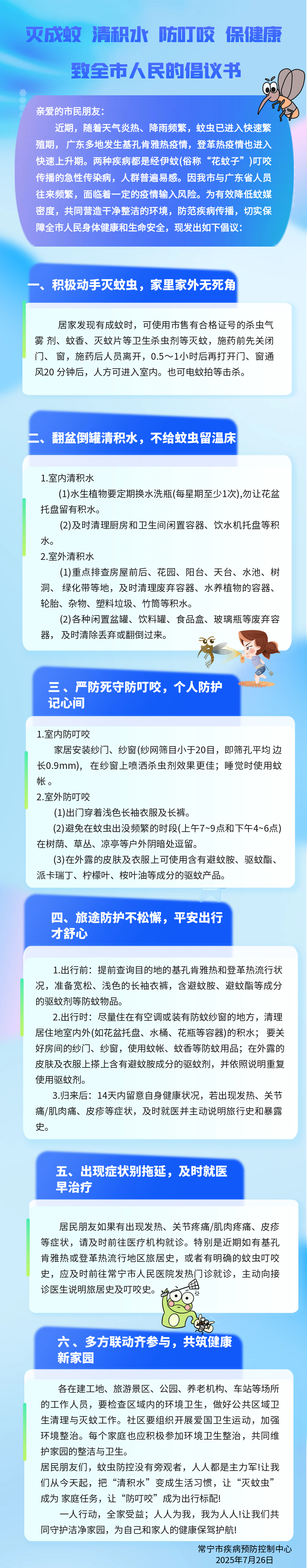 灭成蚊 清积水 防叮咬 保健康 致全市人民的倡议书