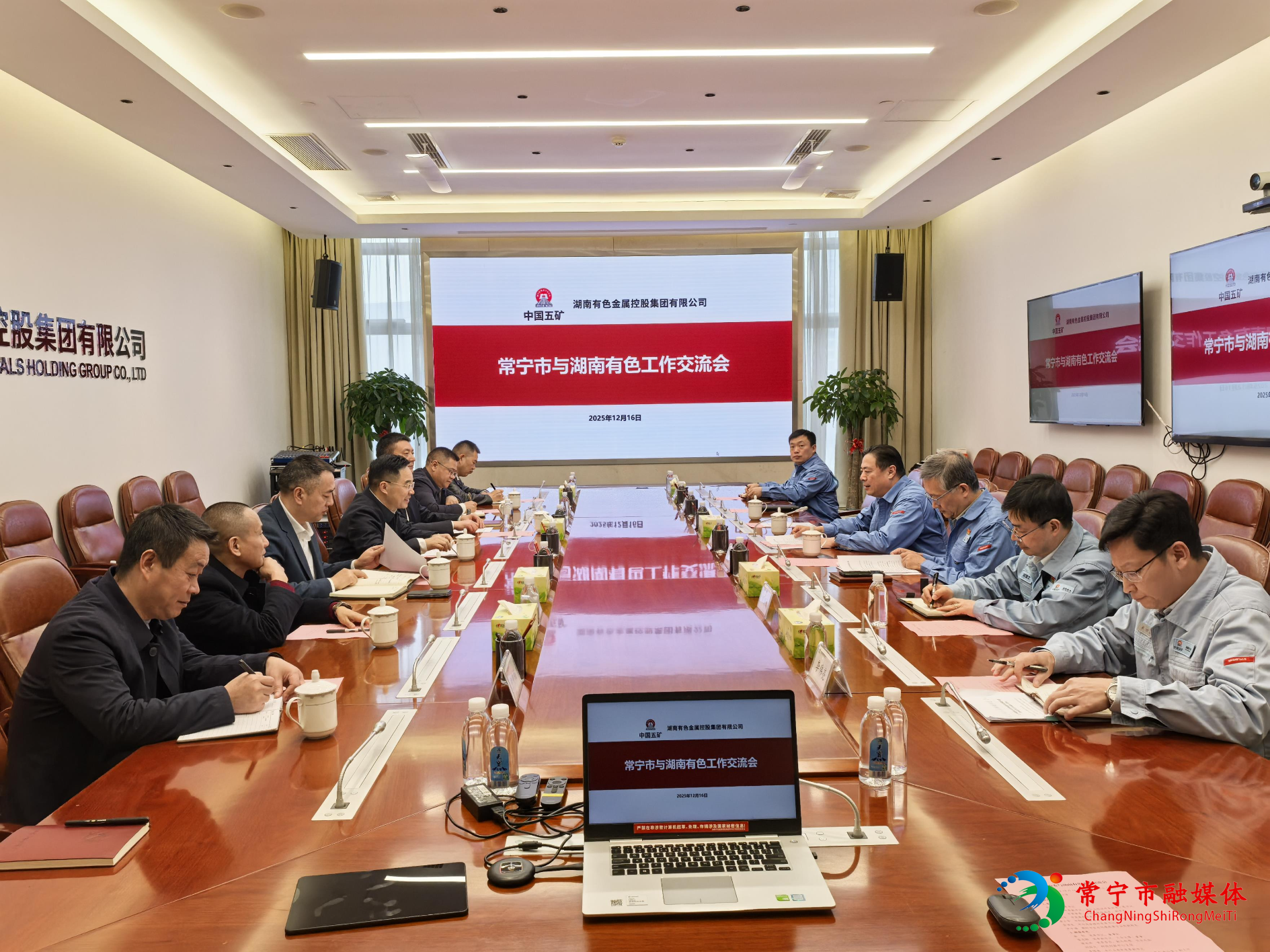12月16日,常宁市委书记罗卫华率队赴湖南有色金属控股集团有限公司,拜访了该集团党委书记、董事长曲阳,双方围绕推进有色金属产业高端化、绿色化、智能化发展等方面进行交流洽谈。市委副书记、水口山经开区党工委书记周俊参加。