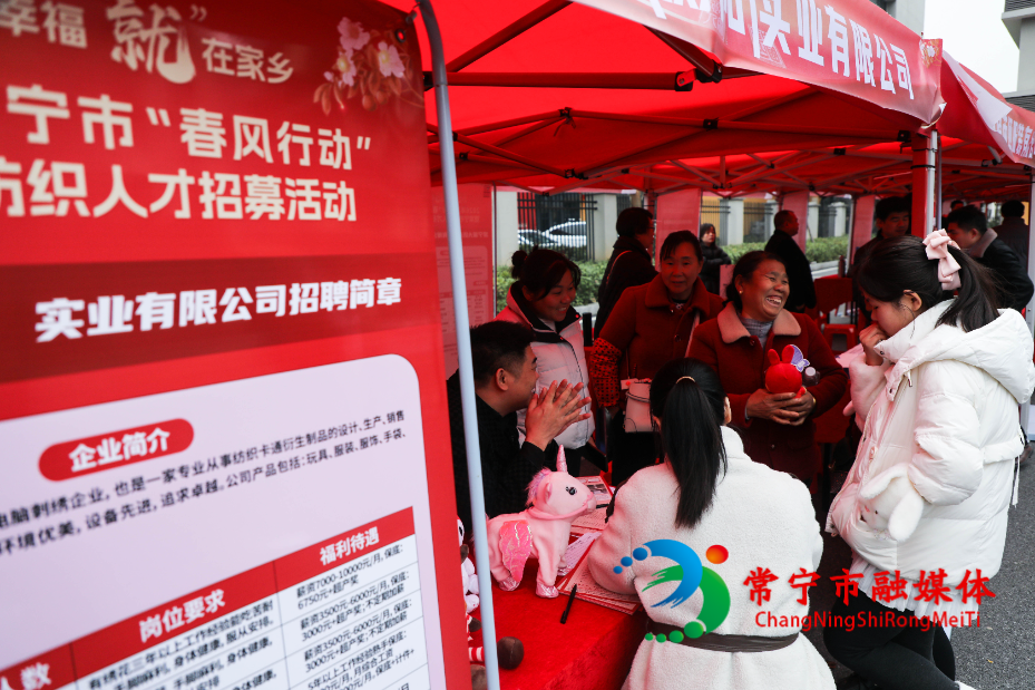 1月29日上午,2026年常宁市“春风行动”暨常宁市纺织人才招募活动在纺织产业基地举行,活动以“织”造幸福,“就”在家乡为主题,精准搭建企业与求职者对接桥梁,为纺织产业发展集聚人才力量。现场人气火热,达成初步就业意向226人。