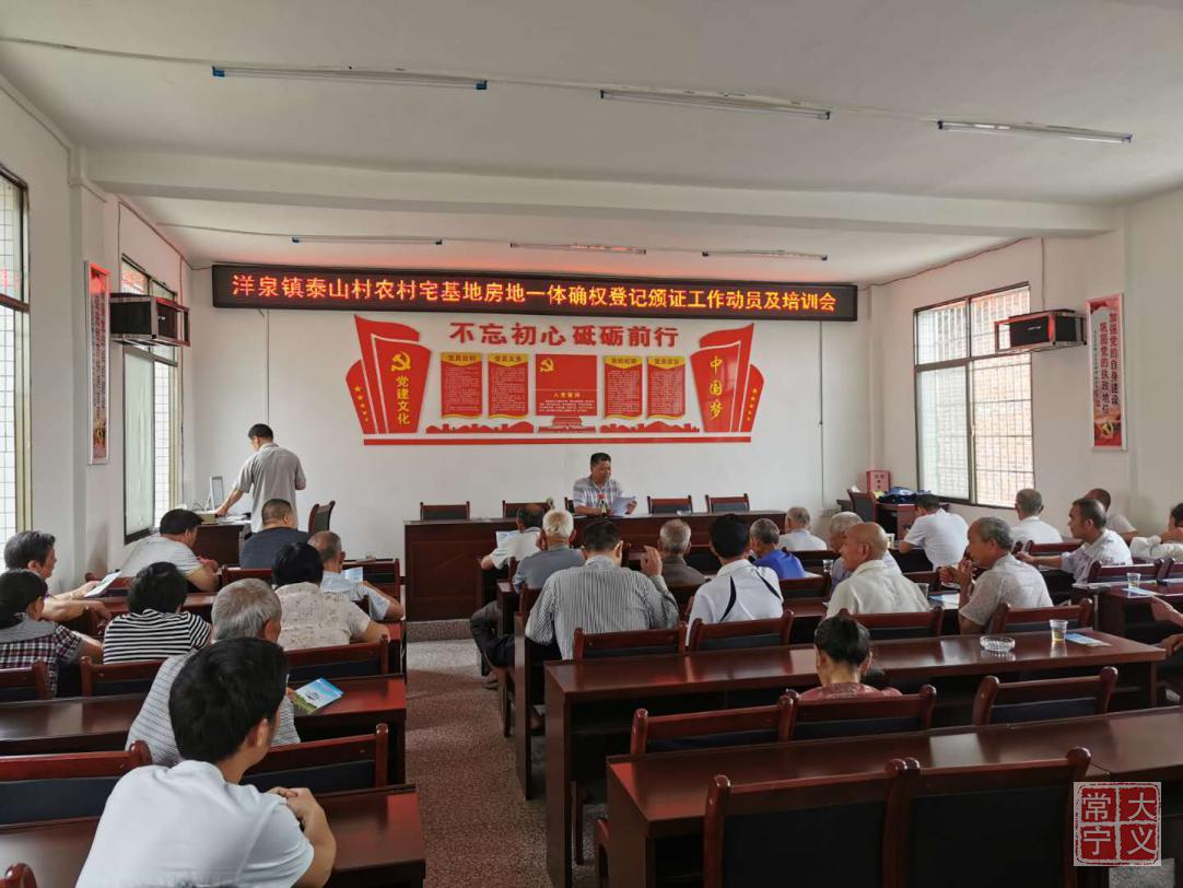 5月9日,洋泉镇泰山村宅基地房地一体化确权登记颁证工作会召开,标志着洋泉镇农村宅基地房地一体化确权登记工作率先在全市进入实施阶段。