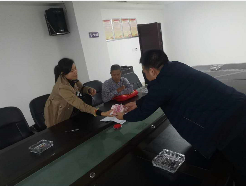 9月25日上午,在刑侦大队会议室,办案民警吴斌将追回的49990元钱如数发还给受害人廖女士。