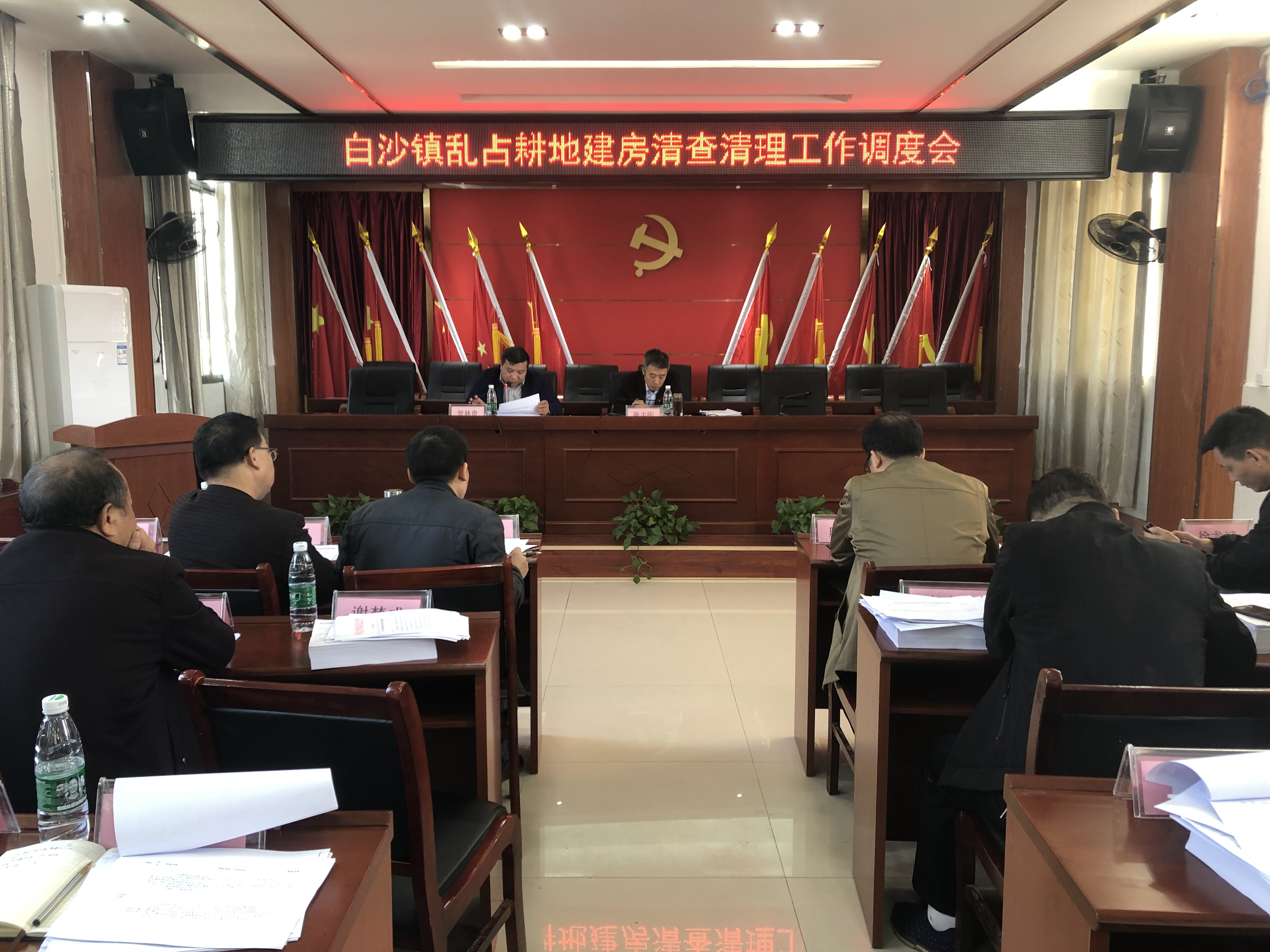 10月22日上午,白沙镇召开农村乱占耕地建房清查清理工作调度会。