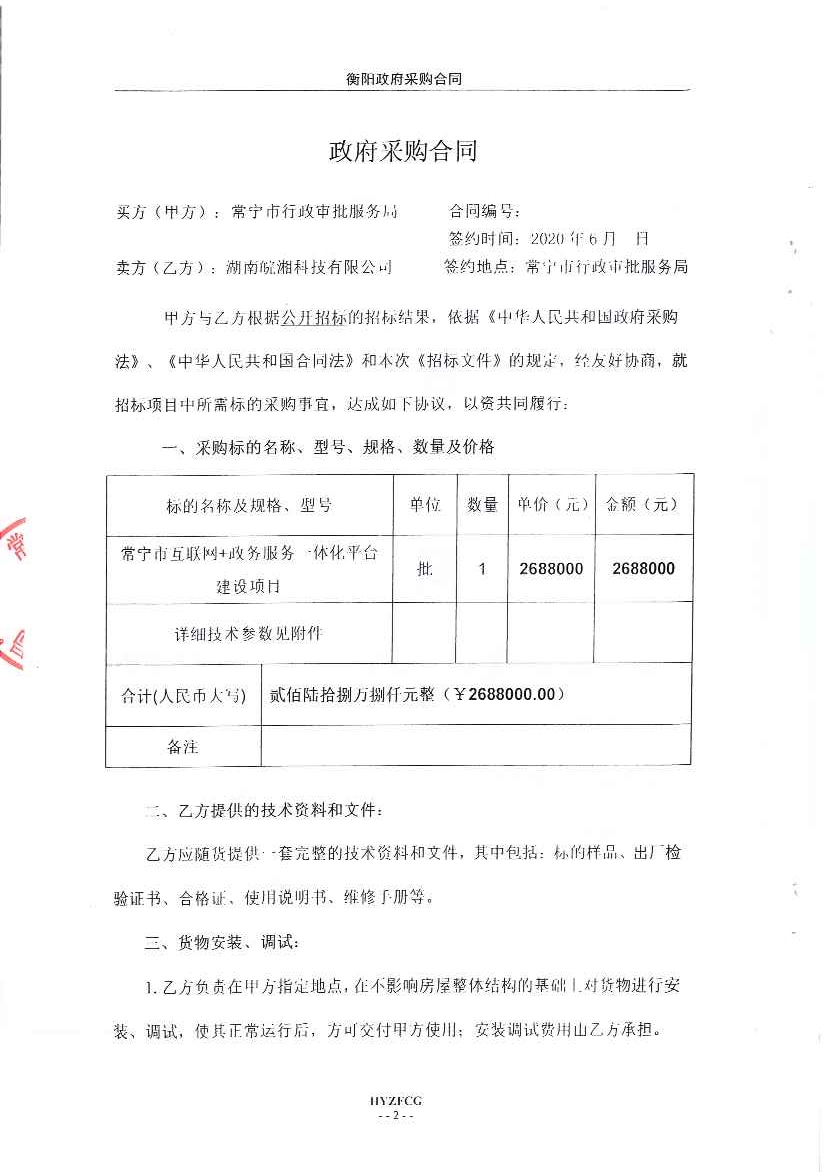 常宁市互联网+政务服务一体化平台建设项目