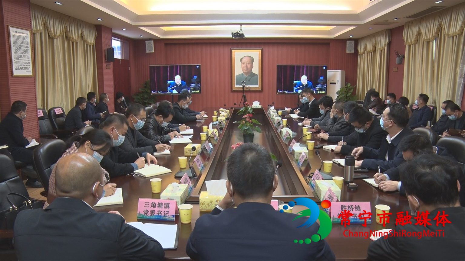 11月18日上午,常宁组织收听收看衡阳市全面推行林长制工作动员部署电视电话会议。市委书记吴乐胜参加。