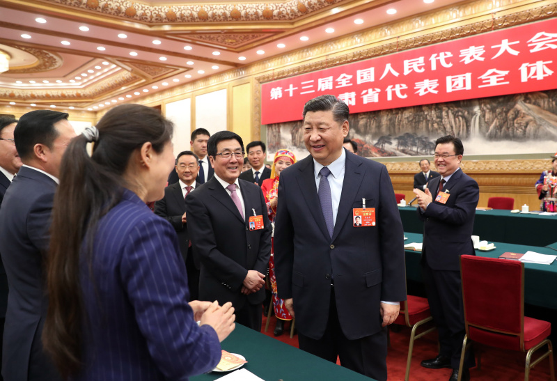 3月7日,中共中央总书记、国家主席、中央军委主席习近平参加十三届全国人大二次会议甘肃代表团的审议。新华社记者 谢环驰 摄