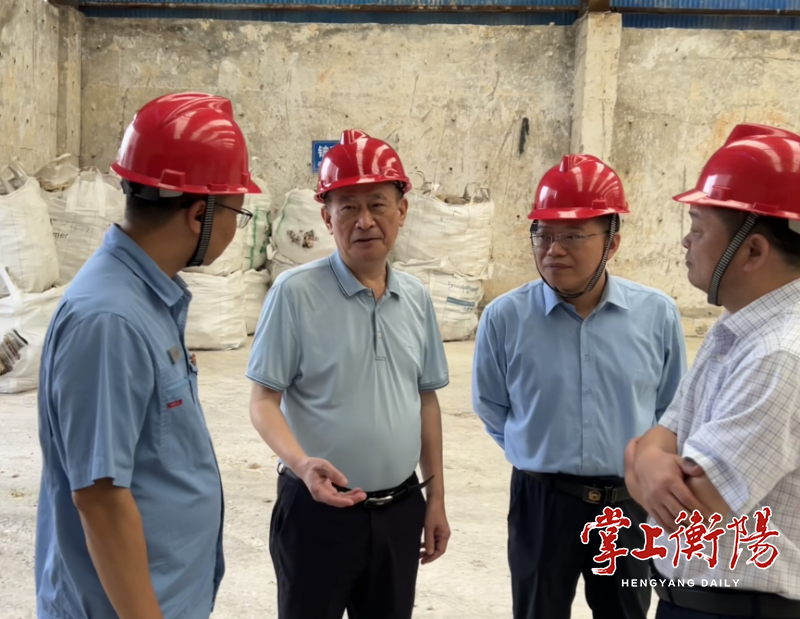 刘益贵一行首先来到常宁市水口山经开区五矿铍业,与水口山经开区、企业相关负责人进行交流,详细了解、调研铍渣处置情况。据悉,五矿铍业含铍废渣超期贮存是2017年、2019年两轮中央生态环保督察指出的问题。刘益贵叮嘱,企业要严格按照上级部门的要求及时处置铍渣,同时落实各项环保举措;常宁市、水口山经开区要加强监管,确保铍渣处置取得实效。